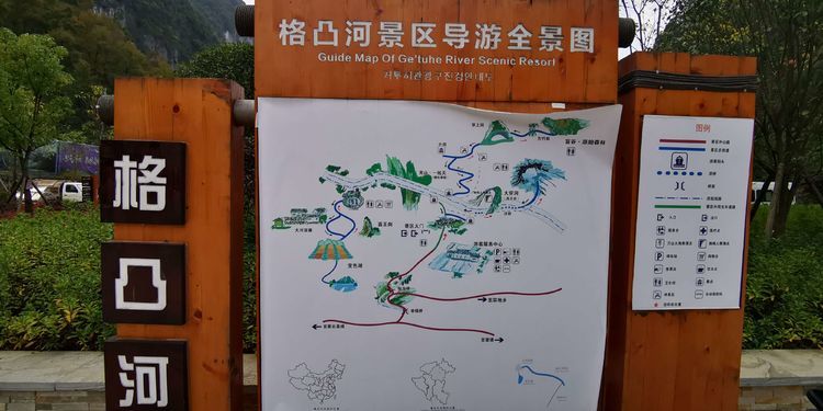 格凸河景区是国家5A级景区,但也还是比较小众的,从景区入口的停车场看,没有一辆大型旅游车,我们12人的小团队,17座的小巴车,独自占着空旷的停车场,上面停小型车的停车场倒还有几辆私家车。