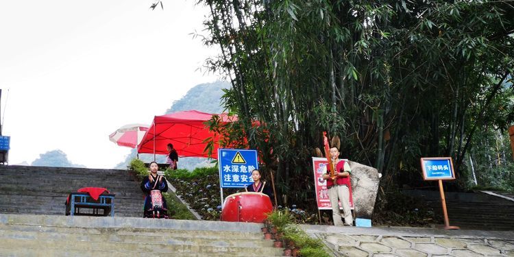 从大河苗寨出来,再坐船送到燕王洞附近的渡口。然后到景区的摆渡车站点,本来要走走的,可是景区车非得赶上来,不坐都不行,一定得送到大门口