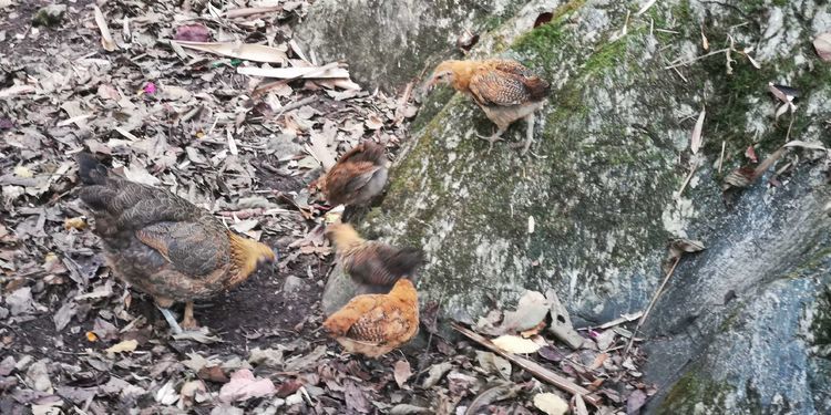 这里的鸡鸭鹅狗牛啊马啊的都是自由散逛的,闲适得很,但个头相对小。