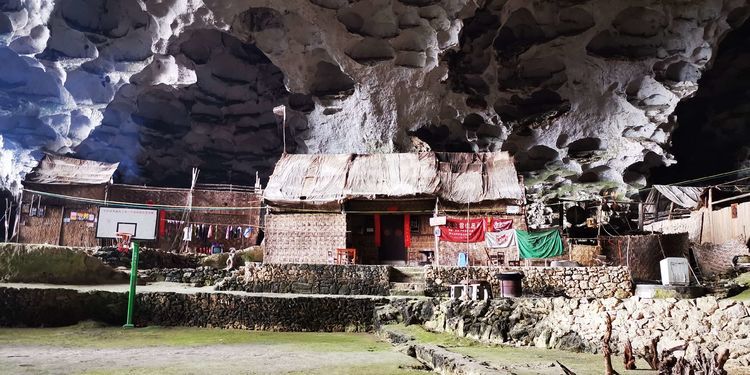 贵州安顺市紫云县水塘镇塔井村的崇山峻岭之间,在海拔1800多米的接近山顶的天然大洞穴里,居住着吴、王、罗、梁四个姓氏的十八户大概百余口的苗族人,以前这里还有个小学,现在学校已经迁出,孩子们已经被送到外面的学校读书。洞穴中通了电,也有了信号,但是苗人们过的还是很简朴,虽然政府已经给他们在外面盖了房子,但是这十八家还是选择住在洞里没有搬出去。