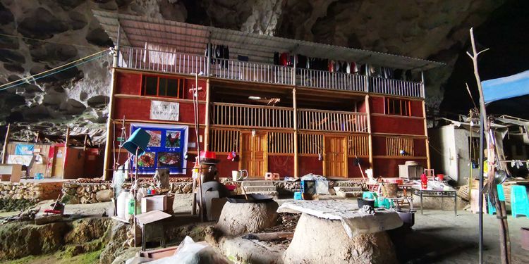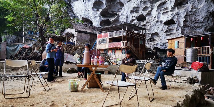 洞穴的入口处坐着悠闲的原住民,这里被报道之后,除了政府给新建的房子可以迁出,还有18户继续留在这里居住生活,只不过生活比原来要容易一些,这里成为一个小众的景点,他们也会经营一些未经雕饰的树木根块什么的,很便宜,不过需要自己背出去。
