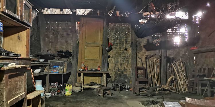 阁楼里挂着满满的衣服,倒是不知道什么时候才能干透。
