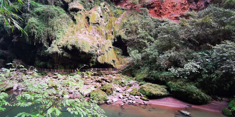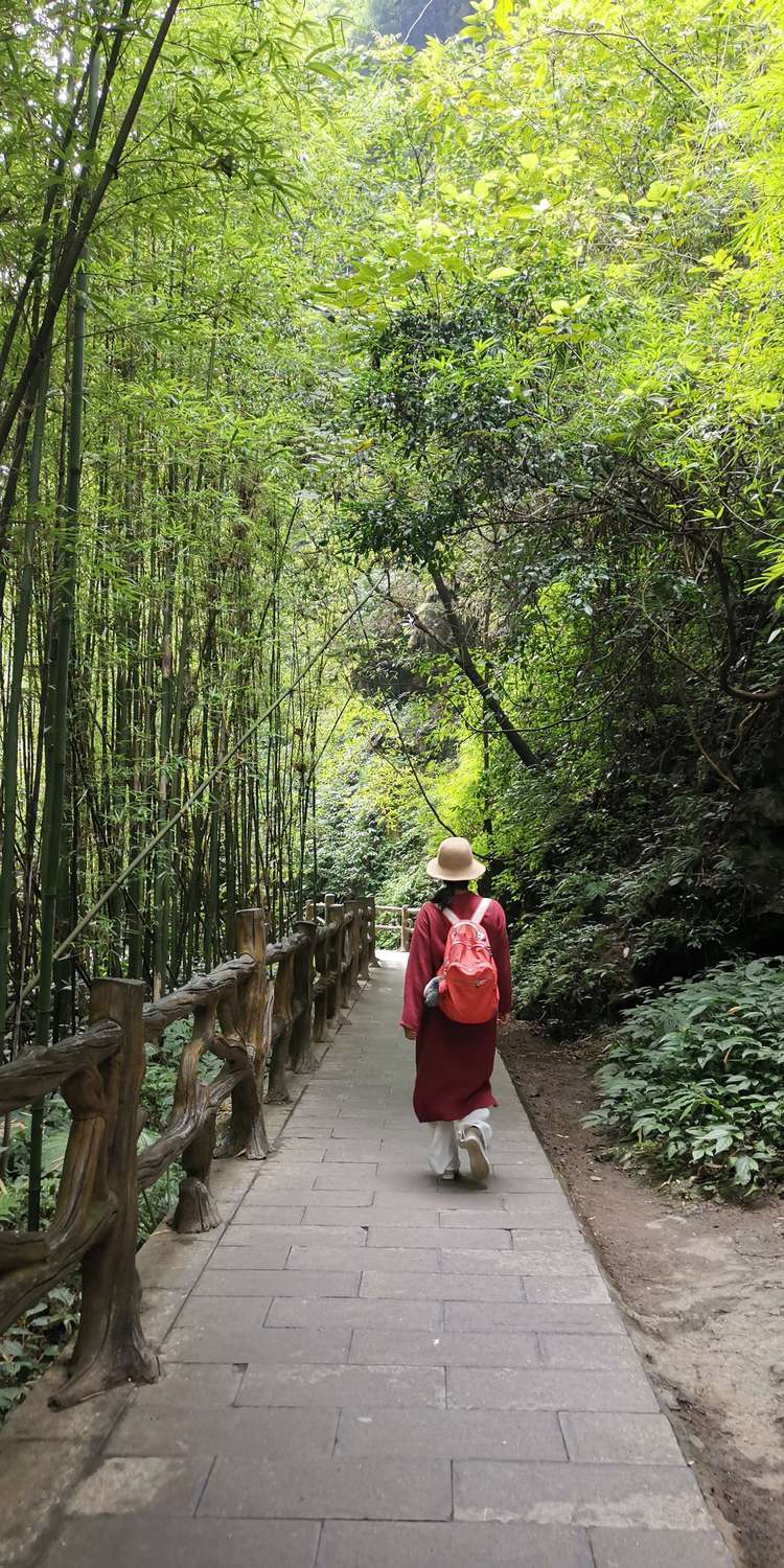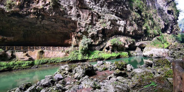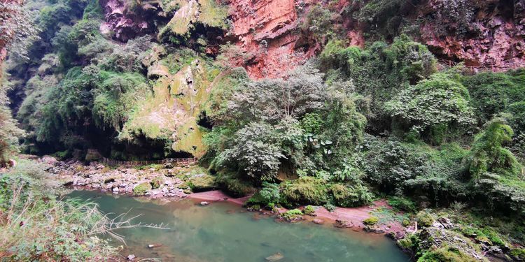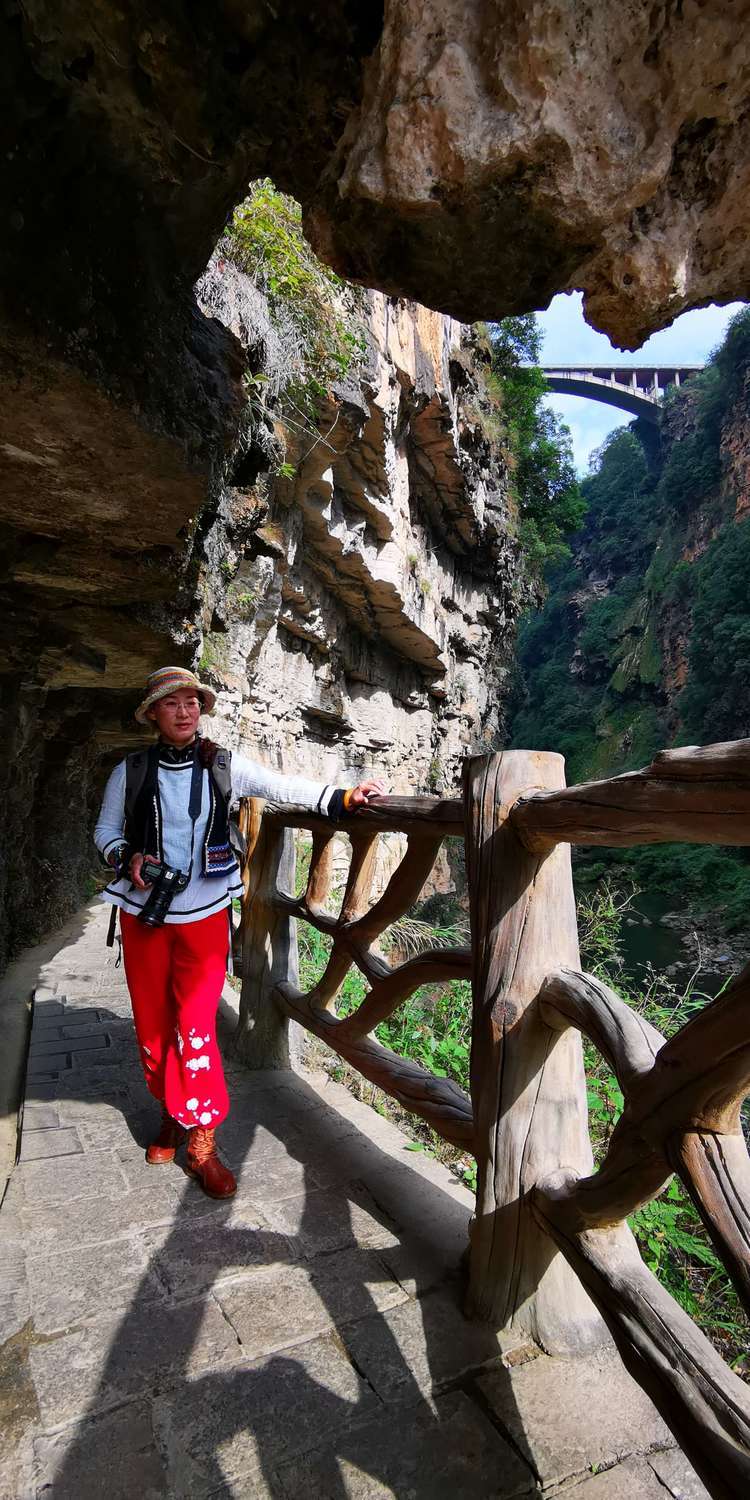 峡谷深幽,栈道攀崖而行,曲曲折折, 引人入胜,沿道而游,如进画中。