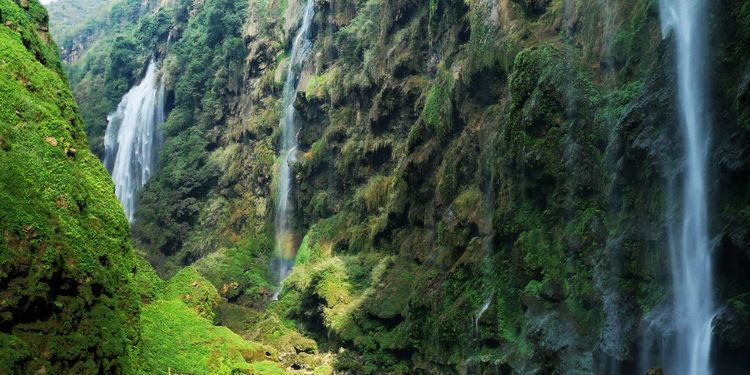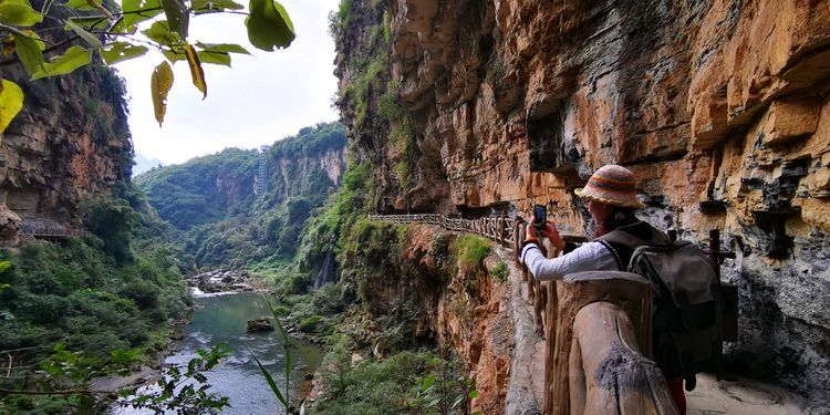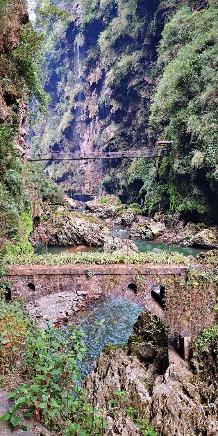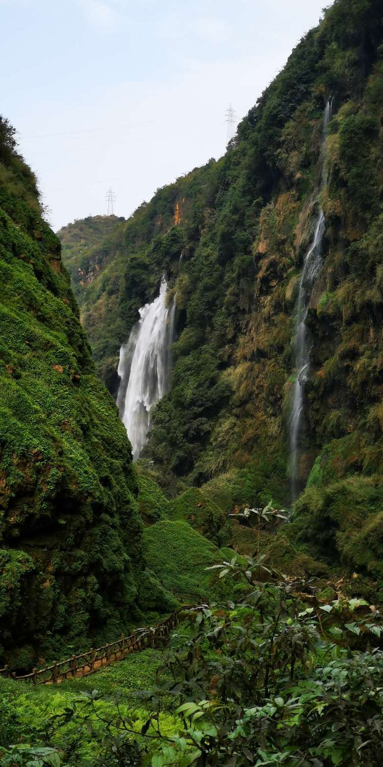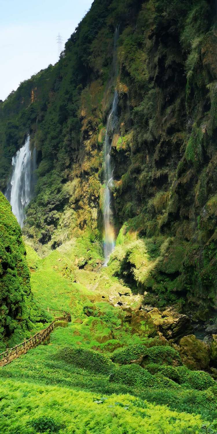 被称为“地球的一道伤疤”的马岭河峡谷,沿栈道游览,一路上数十条高逾百米的瀑布坠入深谷之中。