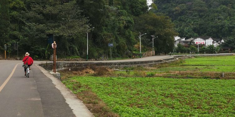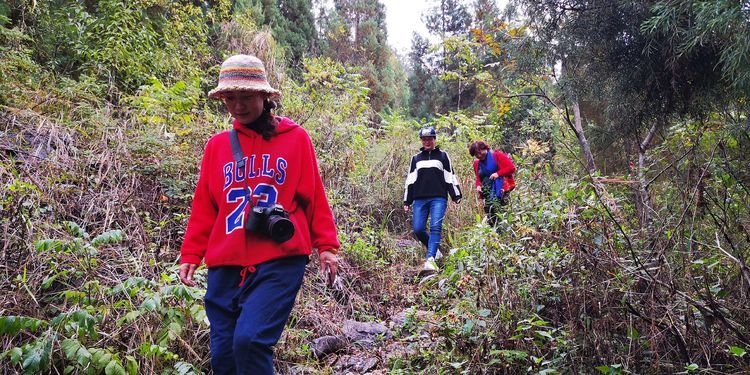 一大早十二哥告诉我们可以翻个小山到景区的公路上去看大地之眼——八卦田,赶巧在山脚遇到景区的保洁人员,两个阿姨很和气,带我们从一条小路上山,这是她们每天上下班的捷径