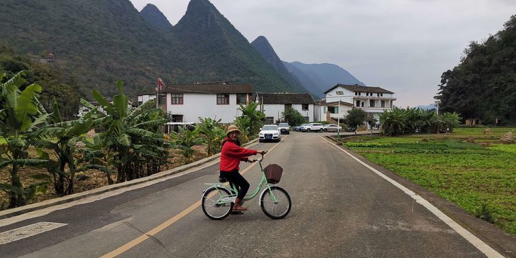 到了民宿,我跟老大放下行李就出街了,想趁天色还未完全暗下来四处逛逛。出了民宿不远就有一处出租自行车,我俩一路悠哉骑行从下纳灰到上纳灰,正好是孩子们放学的时间,每家每户开始忙碌着准备晚饭了,充满着烟火气的小小村落
