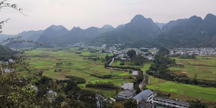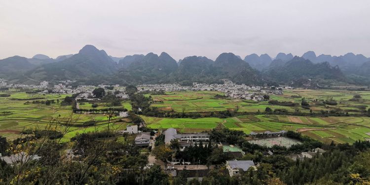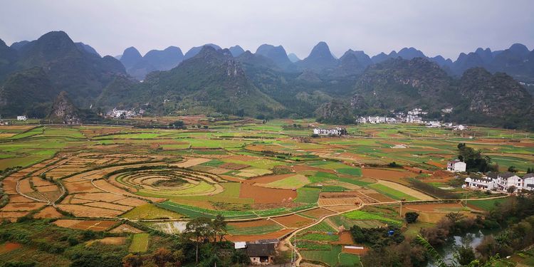 天下田园何其多,纳灰村的农田与万峰林的山峦,田与山,河与村,仿佛巨大的山水盆景。