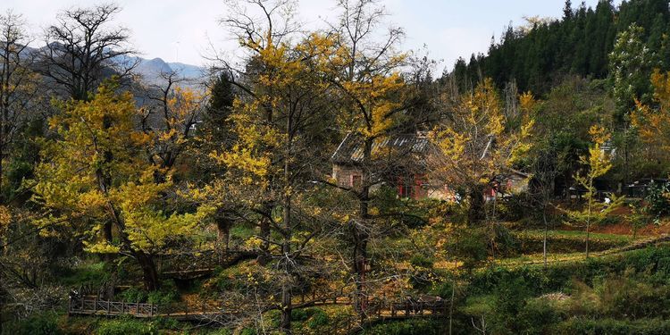 流水潺潺,古树绵绵,小桥映虹,奇峰傍寺 潺潺溪流贯村而过,千年银杏虬枝蔓叶 银杏树枝从小径、田埂、屋基下、石阶上,向四面八方伸展出来,把整个妥乐村托在了树根之上 寨里规定,毁树者以不敬神灵祖宗论处,"轻则罚跪,重则棒捶"。