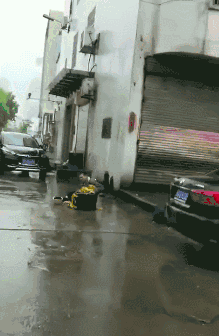 外卖小哥绝望地蹲在地上,在暴雨中痛哭流涕。