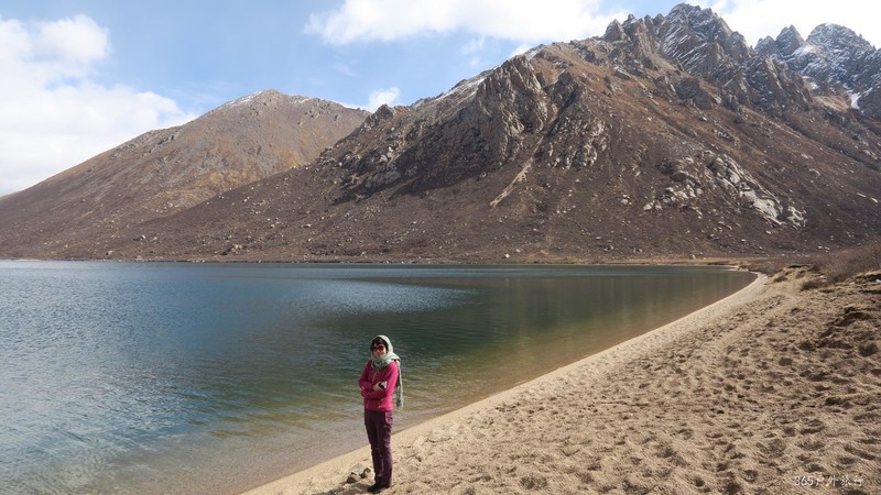 仙女湖的北面繁花似绵,左右两边则是冰川漂砾和火山岩,构成了一道奇异的风光。藏地朋友们常将马瑙、银币和风马等抛洒在湖中,祈求吉祥如意。