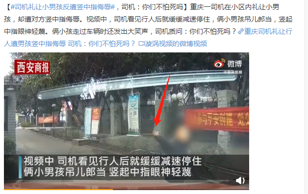 没想到,其中一个小男孩在走到车头旁边时,突然对着司机,举起左手竖起中指,一脸轻蔑。