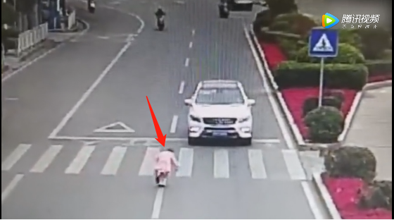 之前,在广东潮州有个小女孩,在过马路时被司机停车让行。