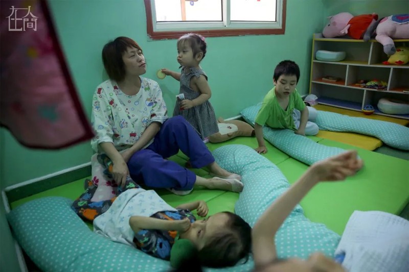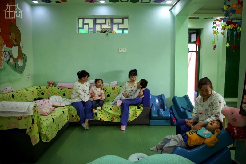 郭永英介绍每个孩子的情况时,会特意避免在他们面前描述具体的病情。在她看来,眼前一个个无法说话、无法自理孩子,仍然是有感受力的,她无法保证自己说出的话是否会影响孩子的情绪。