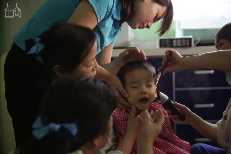 ■ 蝴蝶之家的护理员正在为孩子剪发。