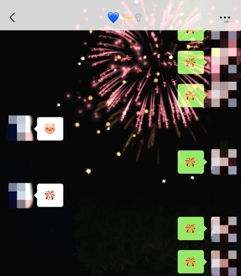 刚更新,先是立马把表情全部试一遍,接着满屏放起了烟花。