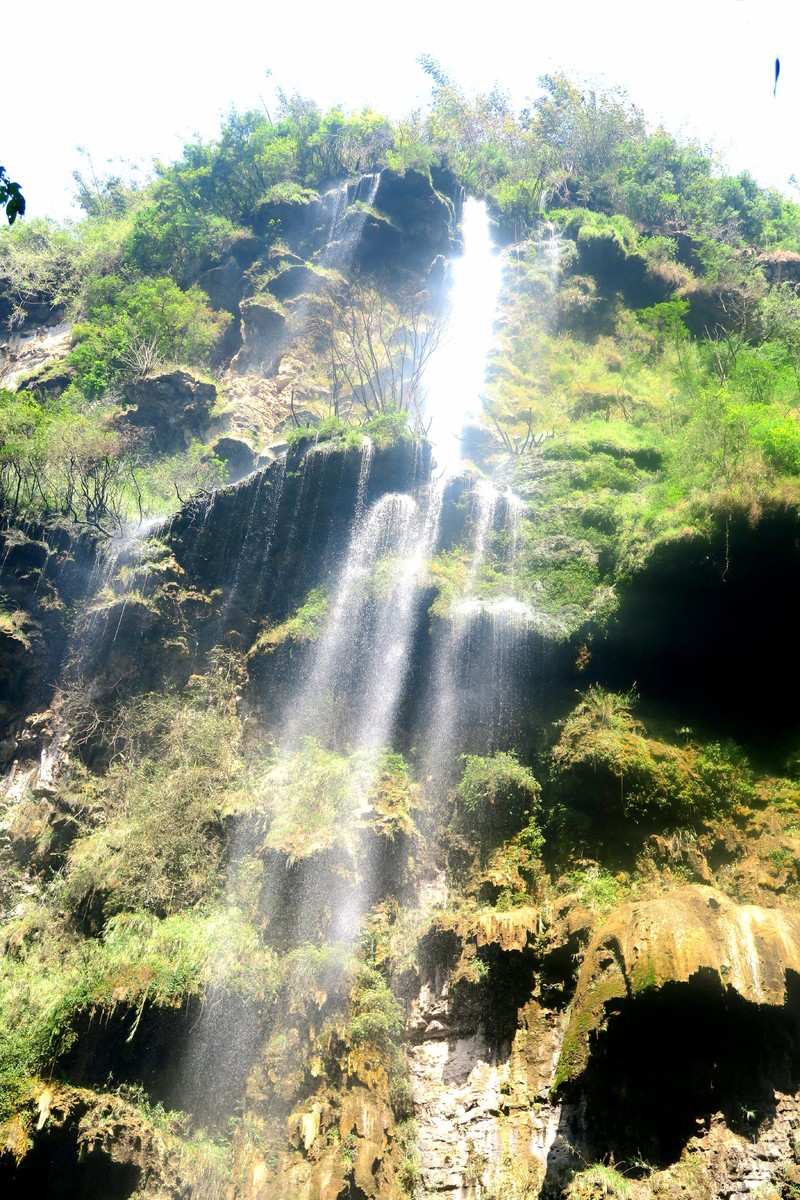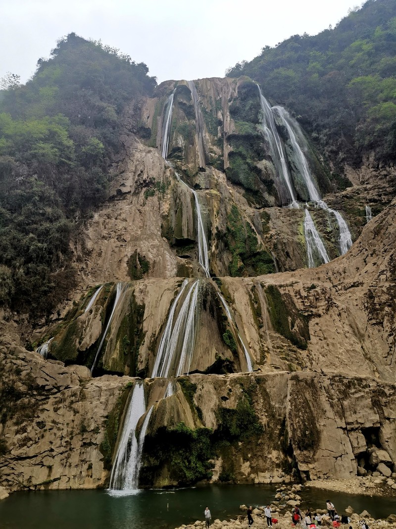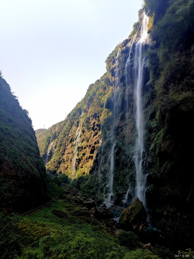 这样一个生僻地名的景区,我已经是二次驻足了。牂牁江,发音“zangke”夜郎国的发源地。司马迁史记:"夜郎者,临牂牁江,江广百余步,足以行船"。这里水天一色、碧波如镜,雄奇险峻的峡谷风光,厚重的夜郎文化,独特的气候特征,使牂牁江充满了神秘诱人的传奇色彩。但是,可但是,有人步子迈的太快,摊子铺得太大,为开发旅游的工程烂尾遍地,以至于当地期望依靠旅游的经营户惨淡经营,只有为数不多的自驾游客,团队客人几乎无几,我们这远道而来的客人也是出乎当地人的意料。真心希望这牂牁江依仗夜郎的历史文化做强做大做出游客如织!在牂牁江和黄果树瀑布中间有个瀑布,知者寥寥,常与贵阳当地有合作的旅游车队和司机也很少有来的,甚至不知位置。而在去往瀑布的路上,能够仰视的一座公路大桥赫赫有名,这就是坝陵河大桥,在瀑布也能近距离观望这大桥的壮观雄伟。滴水滩瀑布,去年的一起瀑降意外事件曾轰动一时。初来,非雨季,此时的水量不算大,顶上流下来的水,在岩壁上折成几叠。雪白的水流画出一道道刚硬的线条,有点水瘦山不寒的感觉,也是很好。收入镜头细看,似一位老人须发飘飘。资料介绍,瀑布总高410米,为黄果树瀑布的六倍,最下层130米,绵延几公里构成了多级瀑布群,也就是我们今天看到的是高滩瀑布。水量大的时候,雄伟磅礴。又看他人攻略称:美丽的田园、梯级瀑布、优雅恬静的布依族村寨,组成一幅优美的田园风光画。看来还需要再来了呢!【365户外·黔西南行】·21年3月20日拍摄于贵州六盘水六枝特区牂牁江和安顺关岭县滴水滩瀑布