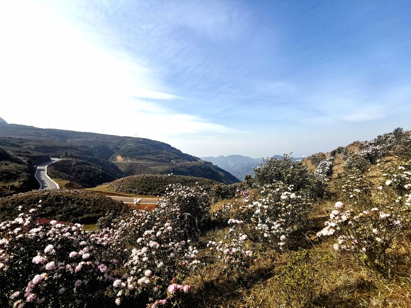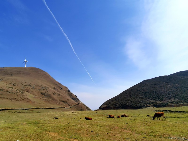 与19年11月那次来乌蒙大草原的相似之处在于,都不是草肥花艳的绿色季。上次的云雾缭绕,山峰在雾气中,若隐若现,恍若天宫浮云,宛若海市蜃楼,如梦似幻,记忆犹新。今日蓝天如洗,白云如歌,空气清新,视野无极,且听风吟笑春风。风吹草低见牛羊的草场、碧水如镜可鉴人的高原湖泊,应季的高山矮科杜鹃次第开放,给连绵的山峦披上了春日的彩色盛装……【365户外·黔西南行】·21年3月19日拍摄于贵州六盘水乌蒙大草原