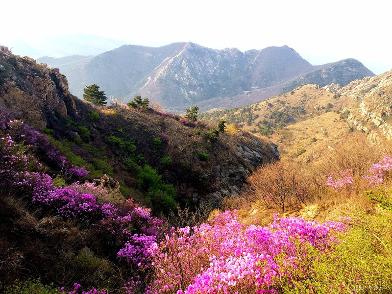 大黑山飞艳,映山红叠彩一片烂漫 这是报春的花中使者将连绵的山坡披上最美的霓裳艳丽不负春光行走山间弯曲的小路在诗情画意的山坡上漫步那些盛开的映山红,一团团一簇簇山岭间弥漫装裱着大黑山的峰峦那是令人沦陷的画面只一眼便已陶醉【365户外寻花行】4月20日下午拍摄于大连大黑山从12月的云南无量山,到3月的贵州平坝,回到大连今天来到旅顺龙王塘,我们一路追逐着樱花的盛开,乐此不彼。 ″一花独放不是春,百花盛开春满园。”龙王塘的樱花园里,各色樱花竞相怒放,千朵万朵迎风含笑,柳绿花鲜,心旷神怡。有几株樱花树,已有着百岁高龄,它们经历了一个世纪的风摧雨打,洗尽铅华,把她一生的磨难包裹在树干里,把它的雍容华贵展现给我们!【365户外~寻花行】21年4月21日下午拍摄于大连龙王塘樱花园