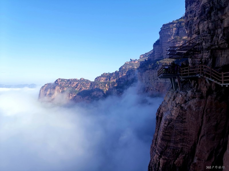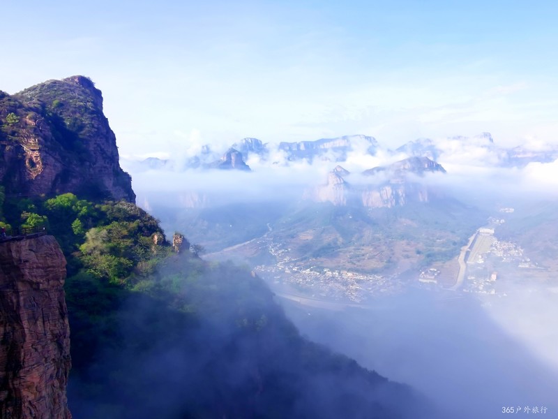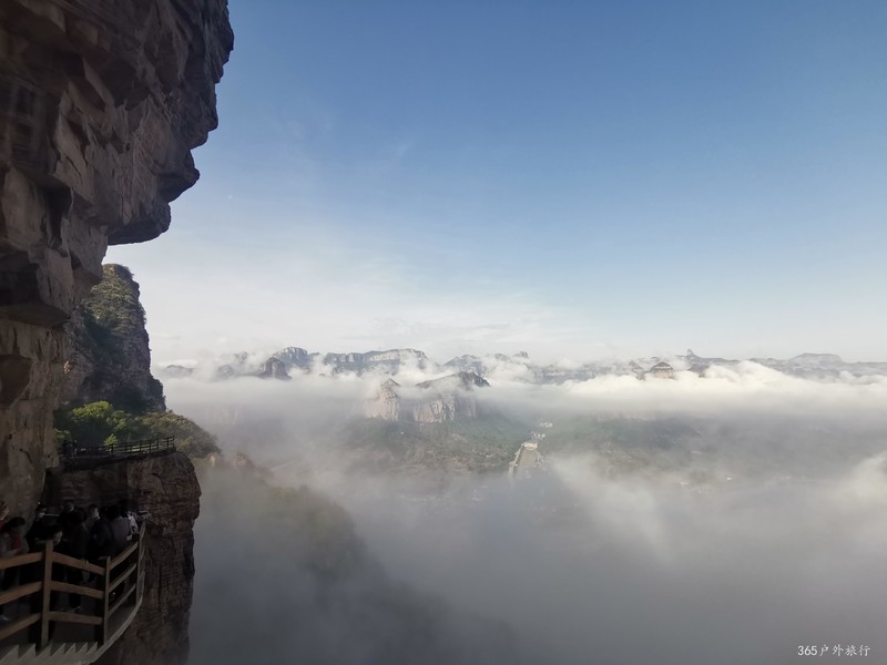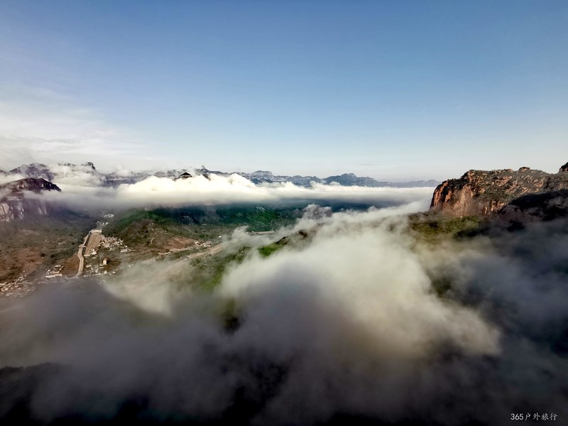 今天,看实景图片与我一起神游仙境般的东太行景区吧!能够目睹这缥缈的云烟山川,实在是我们的缘份。昨夜的一场贵雨,不早不晚,如有幸运女神的眷顾,滋润了大地,湿爽的的水汽与春的温煦完美联手,在清晨织就了这令人迷醉的自然巨作。山下仰望,半山腰飘起了乳白色的雾,奇峰异峦在雾霭中若隐若现升腾弥漫的氤氲山气,像是仙女臂间的轻纱。及至云端栈道,俯瞰七步沟青云缭绕,远眺群山如在云端,那变化幻境的云海,如是着着一身白纱的美女为他轻歌曼舞。一场云雾的美丽邂逅,让我们领略到美轮美奂的东太行,欣赏了云起雾涌的天地之间之自然绝妙,宛若人间仙境!好一个东太行!【365户外~太行行】5月3上午拍摄于河北邢台市武安县东太行景区