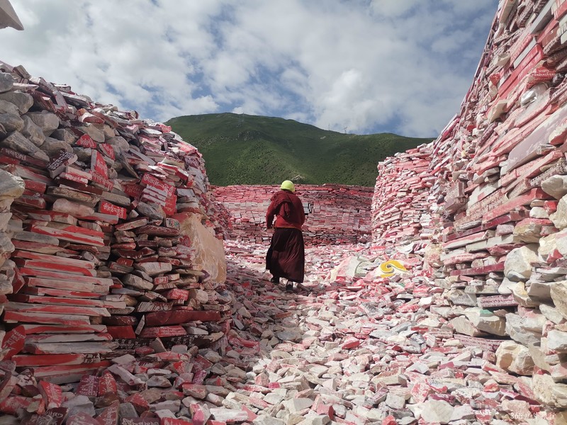 据说玛尼石上刻的经文有近200亿字,可以称得上是“世界第一石刻图书馆”。
