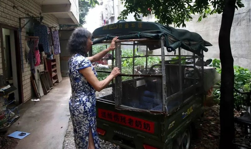 四川峨眉山75岁老人蔡冬凤,年幼时生了一场大病,导致她的双手双脚全部截肢。