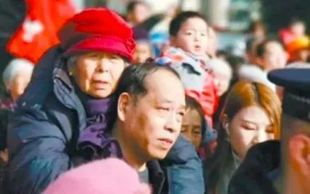 2018年元宵节,在山西长治八一广场,50多岁的程英锐背着85岁的老母亲,挤在人群中看完了民俗表演。