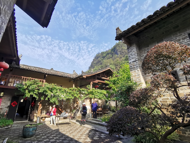 旧县不是县却为村?很奇怪。据说1400多年前,这里曾是“归义县”,后并入阳朔县,大概有些念旧吧!更名为“旧县”,旧县村毗邻遇龙河,保护尚好的古建筑群青砖黑瓦,深深庭院,还有可以触摸到的斑驳的院墙,雕花的门板、刻字的古井……每一处被时间打磨过的景致,都显现出岁月的沧桑。现今基本被有情怀的民宿投资人改造,颇有匠心,古朴典雅,成为小资群体的度假打卡地。 阡陌交通,鸡犬相闻,
