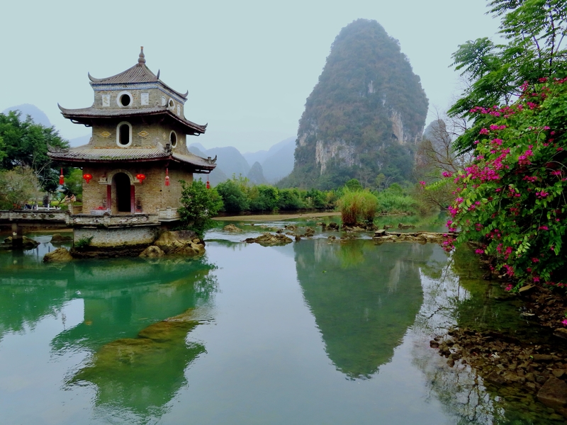 到了明仕田园,大门的一个偌大的烂尾仿古建筑大煞风景,立马没了游览的兴趣。本来就是随机的景点,索性放弃,看过了漓江,游过了遇龙河,这里不进也罢,一直认为明仕田园的门票价格和景色“物有不值”。和人聊天得知,这仿古建筑又是一个脑残的拍脑门作品,被叫停后凄凉的立在那里丢人现眼的被指手画脚。