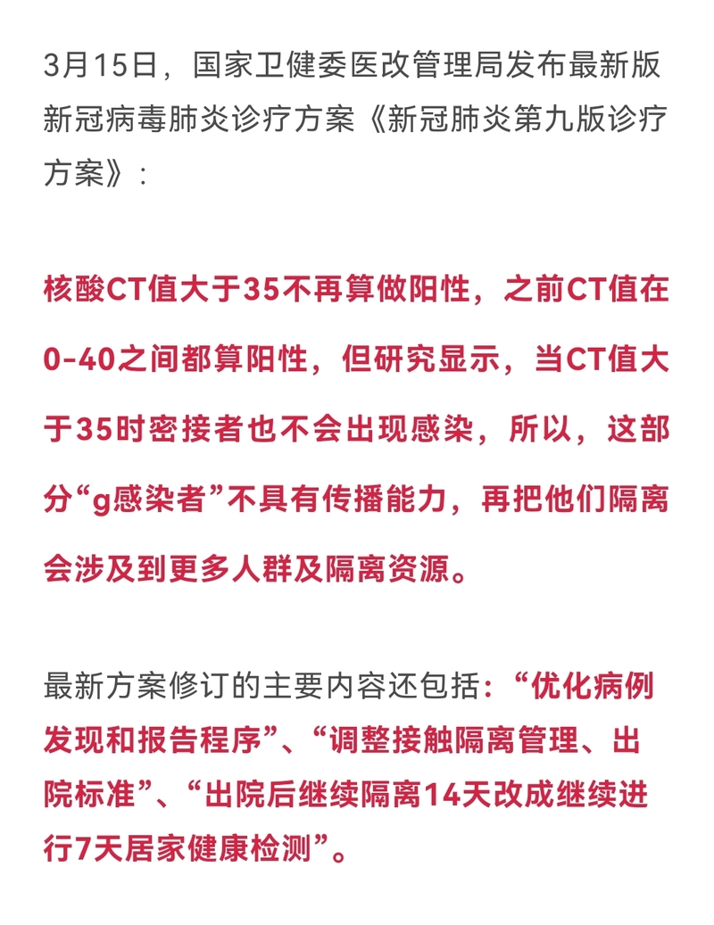 吉林已开始实施《新冠肺炎第九版诊疗方案》 这是防疫政策的重大变化,科学而慎重。 金普新区管控升级,只进不出。不恐慌,不紧张,所有的政策和措施,都是为了尽早回归正常的生活! 如张文宏所言,就当是“倒春寒”吧!