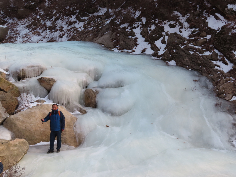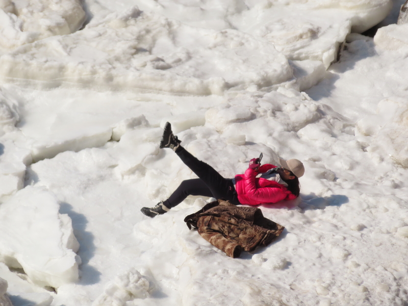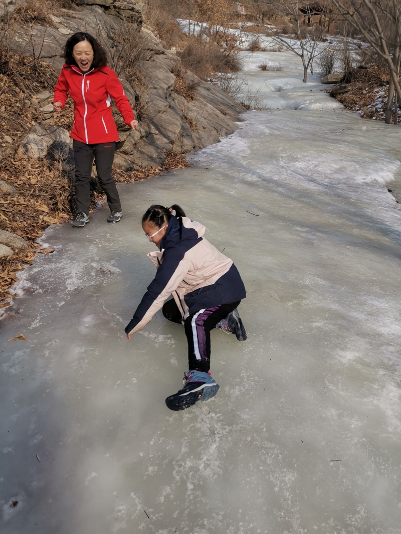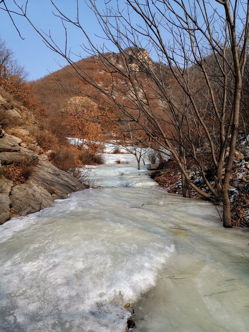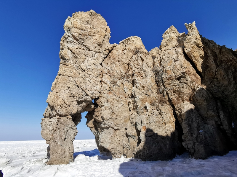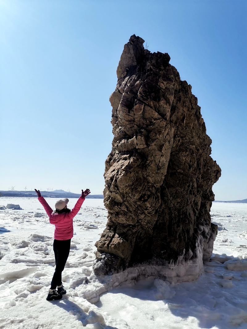 提前确定枯潮日期,合适的时间到达。漫步于海冰纵深处,只有这个季节可以涉足。你能找到原始冰原的体验感。潮起潮落,海水凝固,片片叠加,晶莹玉洁,小心的行走,都怕打破这白色的纯净,一不小心,踏入一个没有危险的冰窟窿,引来众人大笑。 “大象吸雪”,一个群友问我是否找到,问这话时我就在这里,我一直称之为“象腿”,应该是到现在还没有一个比较确定的名称吧。其实你喜欢,发挥想象力,你给的名字那就是最好的。属于你自己的喜欢。