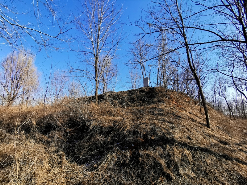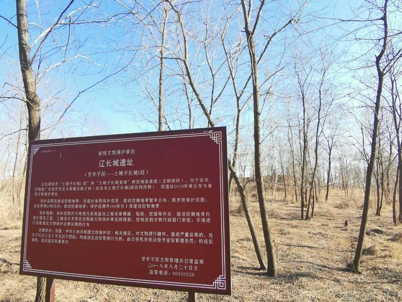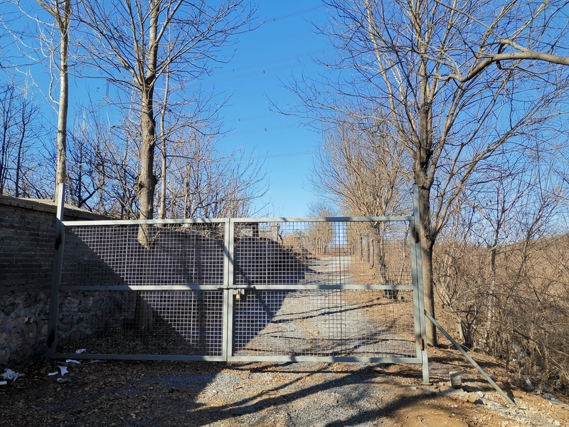 虽然有铁门把守(文物保护),旁边徒步可进,这关城遗址如社区主任所言,没有啥可看的。到了近处仔细在下方观察,那凸起的已经树林密布的土丘就是“哈斯罕关”了,还好,有个“金县革命委员会”字样的碑文能够确定这里就是我要寻找的!