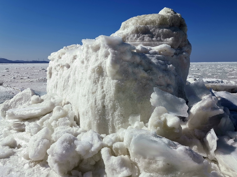 在中国的大地上,我敢说这里是最佳的海冰拍摄地,没有之二。 按地区和气候而言,中国能够形成海冰的地方只有渤海湾天津,唐山、秦皇岛、葫芦岛、锦州、营口,黄海的丹东,而大连所在辽东半岛横跨渤海、黄海,海岸线漫长,且海蚀地貌具有明显特色,非其它城市能够相比。