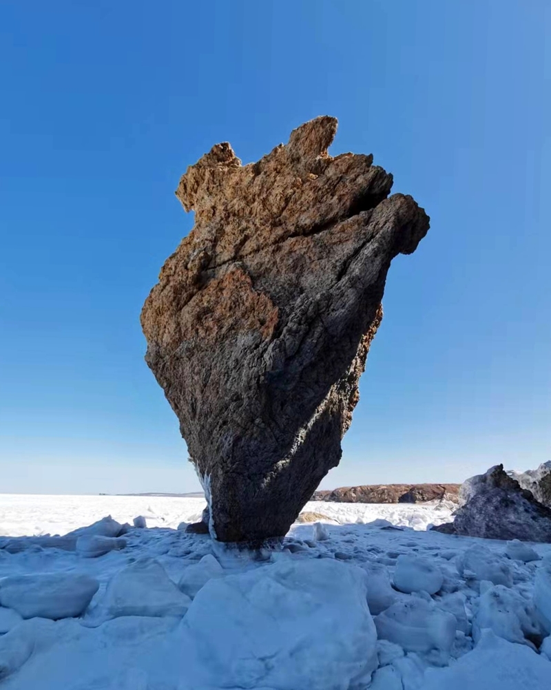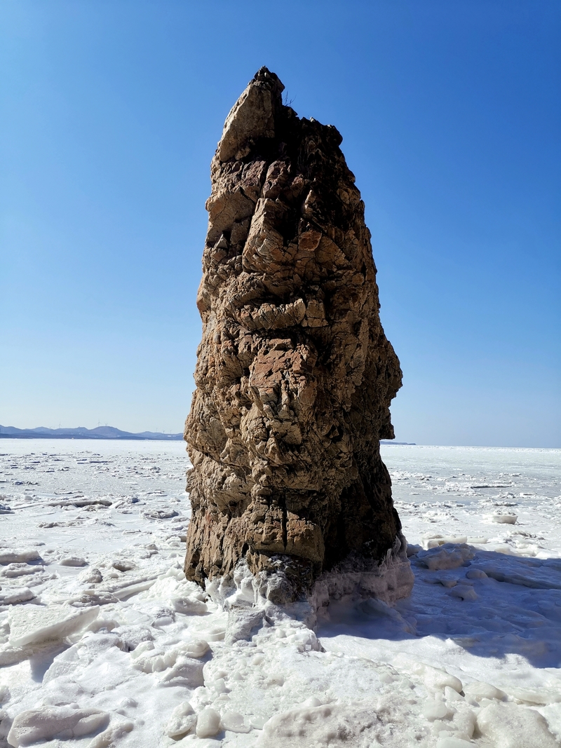 我说的这个地方见“排石”,位于大连瓦房店驼山乡海滨,曾经的“桌腿石”上过《中国国家地理》封面,但地质变化的自然坍塌留下永不再生的遗憾。但排石依然在,而冬季的海冰景观也是国内独一无二。