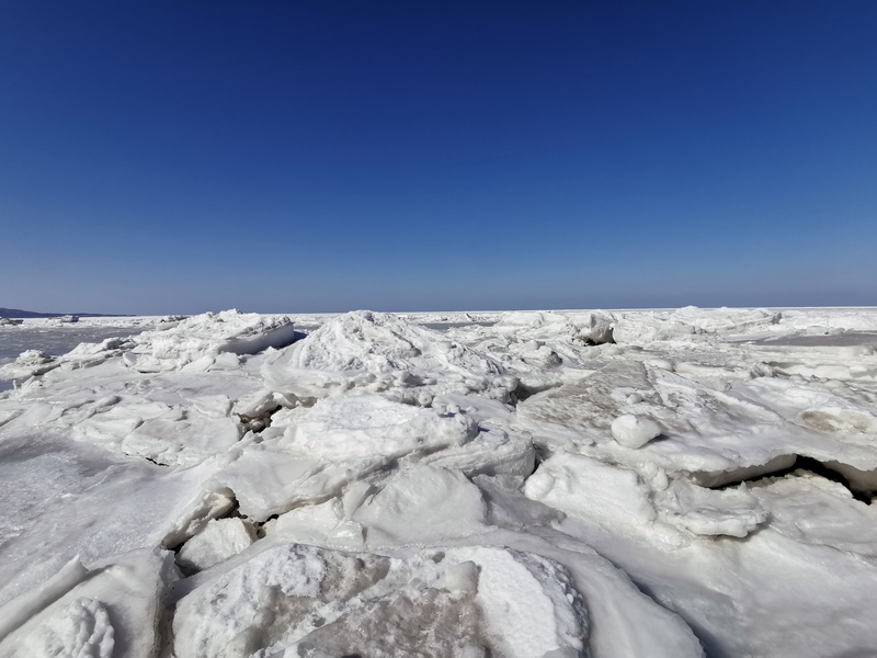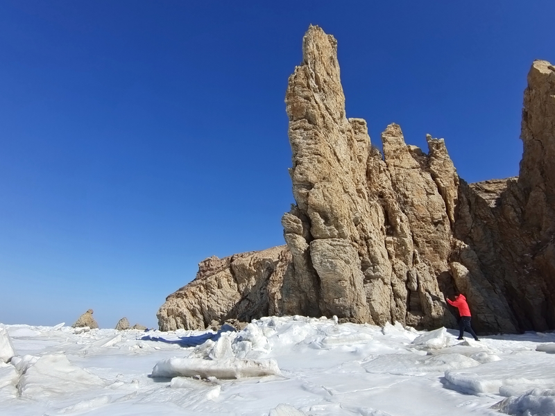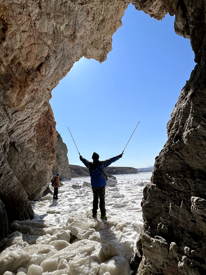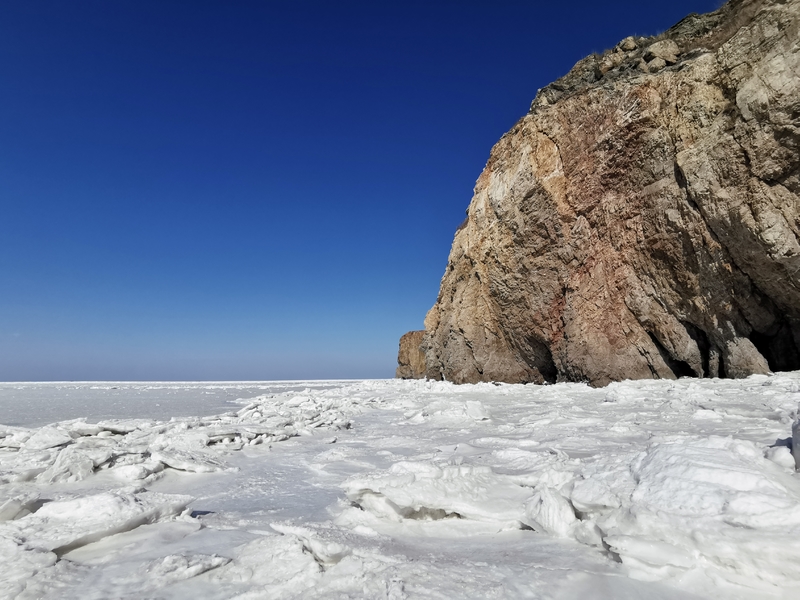 悬崖峭壁之上的高处可以俯瞰冰海白色茫茫,我们仿若置身于史前冰河时代,亲眼目睹气势磅礴的冰原奇迹,偶尔还能聆听到冰排融化的声音。下海近距离亲密接触,冰面起伏跌宕,犬牙交错,冰块之下,也有冰洞如真实的冰川,大小不一,四周尽是不规则的冰块,成像后“夸口”在冰川之中,完全能够以假乱真。