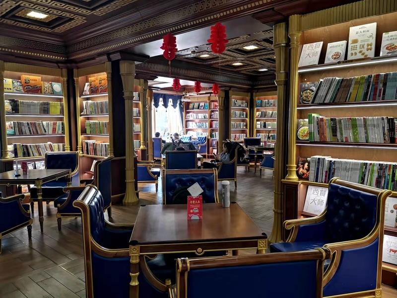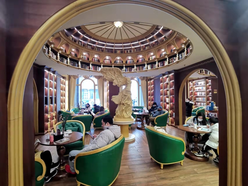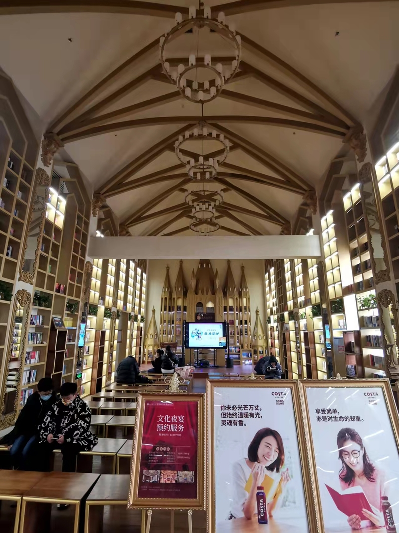 书店、图书馆,阅览室、讲座厅、咖啡 、餐吧、文创商品……,一个极具装饰品味的空间, 如此时尚的元素汇集,书墨已经不是简单那句“书中自有黄金屋,书中自有颜如玉”含义了吧!