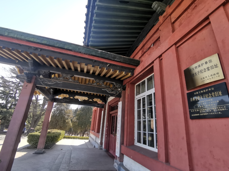 日俄战争后,打败俄国的日本政府放他的画像在高堂之上,作为偶像,来教化那些刚刚移民大连无法无天的日本人。关东都督府批了地,财务省给了银子,于是就建了“圣德太子纪念堂”,也就是我今天照片的建筑。