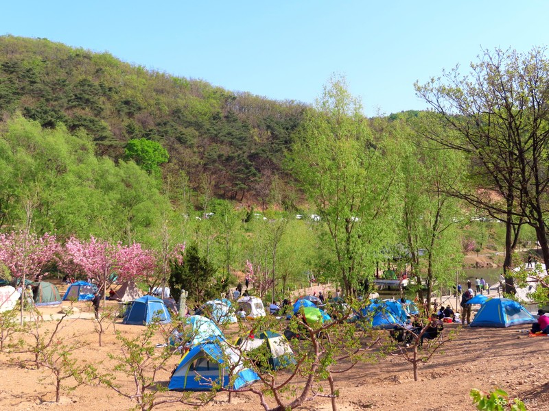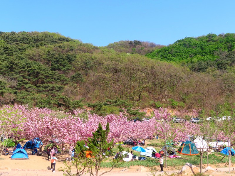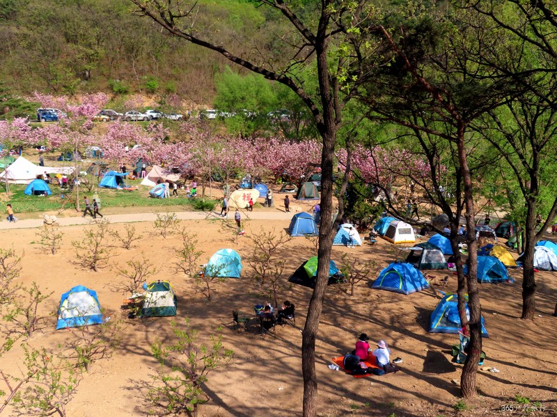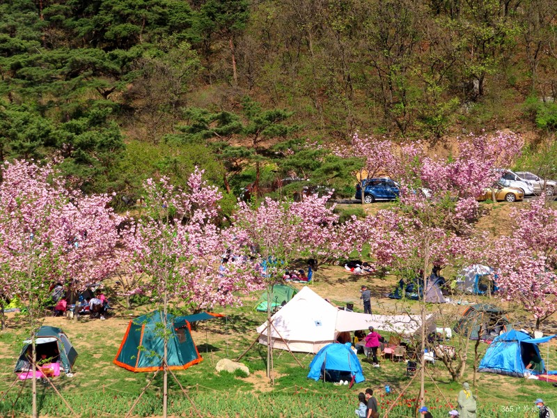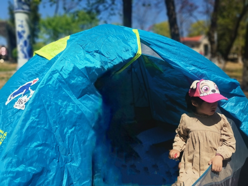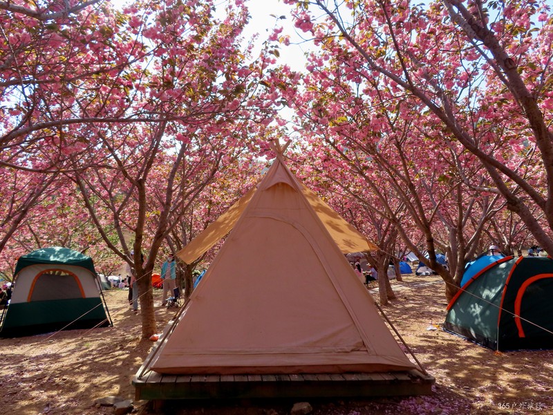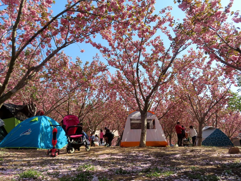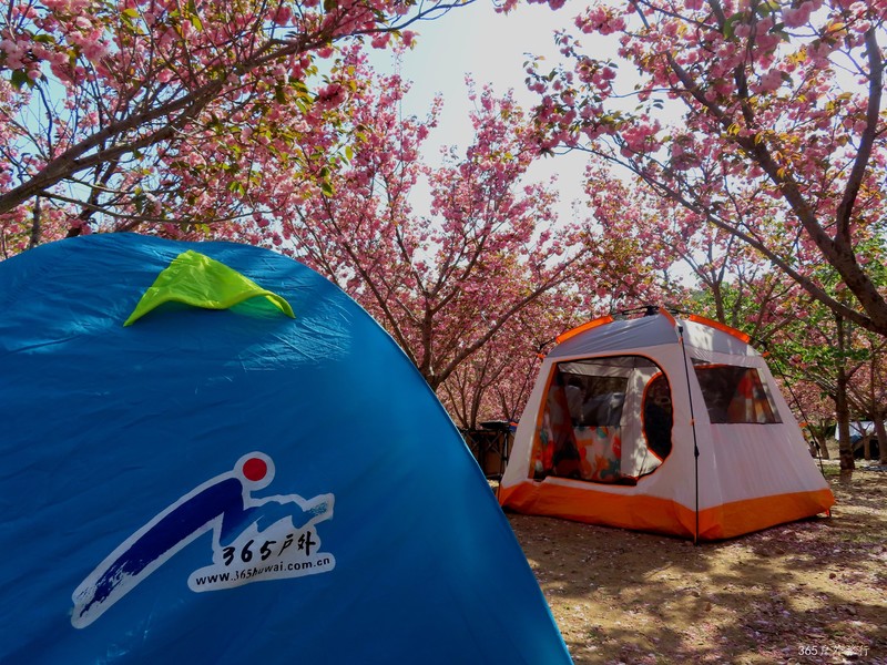 一人走在山林小路,信马由缰,无需瞻前顾后。第一次玩耍视频自拍,想想自己都笑了。和孩子也是默契,她们停车搭帐篷的地方就在我下山口十米左右。樱花树下,数百个帐篷中我毫不费力找到,蓝色蓬布上“365户外”LOGO分外醒目。