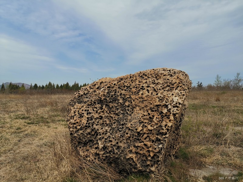 突兀的切面直立,下方峡谷为松林和草地,远处大地村庄、田地一览无余。站在崖壁上方,却有“君临天下”的气魄,只有亲身其中,才能体会那胸阔无边的意境。山顶巨石平整,陡峭的石林造型各异,天然成趣。这里和东屏山、大平山有异曲同工之妙,也有独树一帜的奇特。这里的岩石有一个共同的特点,都有大小不一的圆孔穴洞,与西部大孤山海岸地貌有共通之处,这难道是同一个地质时期同一个原因形成的山海奇观吗?