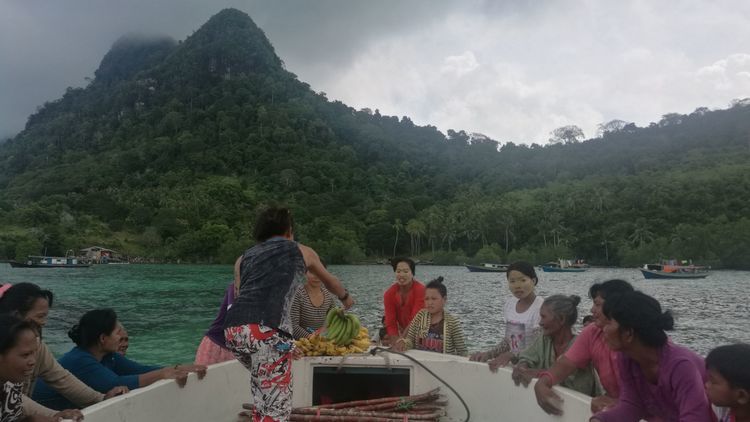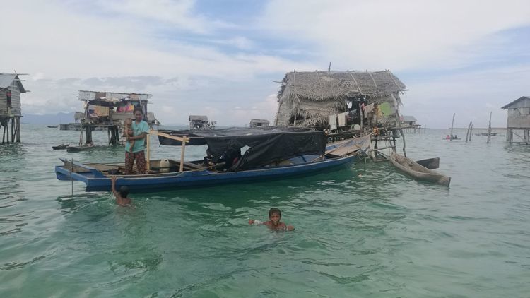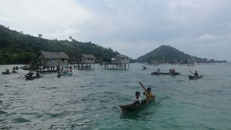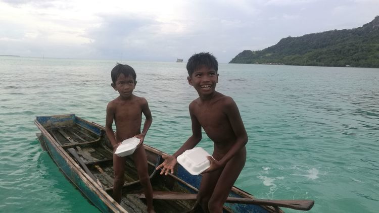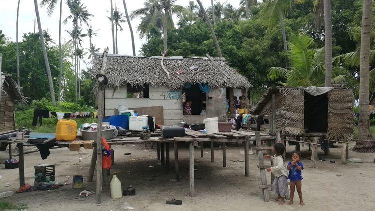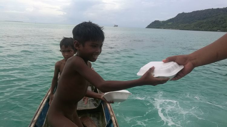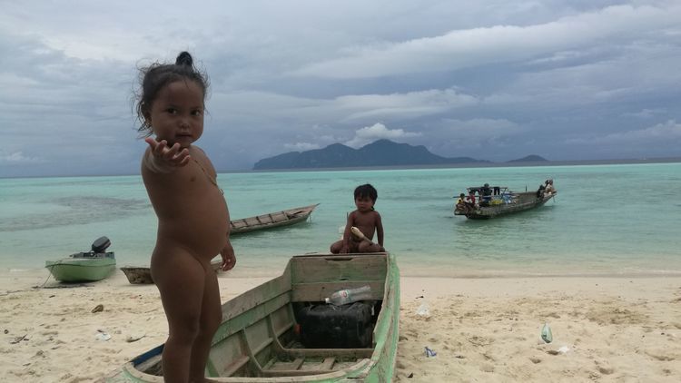 我们第一个目的地就是去感受巴瑶人的生活。蓝天、大海、白云、小船、划着小船蜂拥而至的老人,妇女和孩子、海上四处漏风的高脚屋,这些组成了巴瑶人的元素。