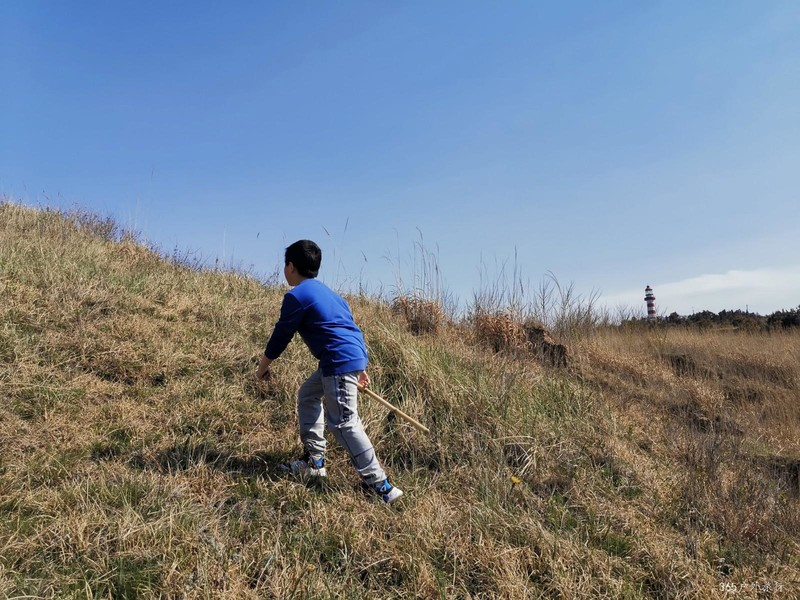 滨海路瓦房店八仙岛度假区南约三公里左右往海边拐入,一座灯塔耸立,就在这里停车奔向海边。眼前一亮,自然的丘陵山野,毫无人工的打磨痕迹,起伏的草地延伸至大海,完全就是纪录片片中的令人艳羡的原始风光。