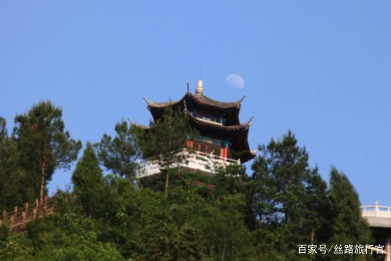 回龙阁这里是观赏青木川全景的绝佳之地,堪称至高点地标。从烟馆的一角透过天井便可望见回龙阁,又形成了景中景的奇观。走过一条铁索桥便到达了回龙阁的山脚下,沿着斑驳的木栈道攀沿而上,抬首便望见三层楼高的回龙阁,阁顶真可谓是360度无死角,景色绝佳。