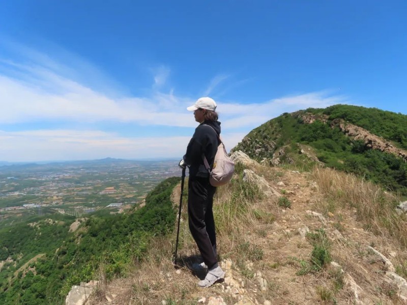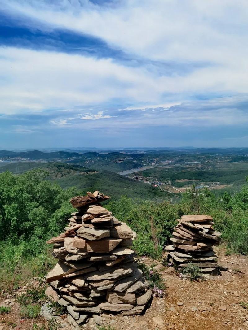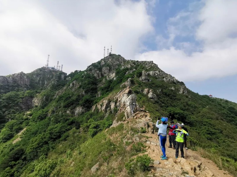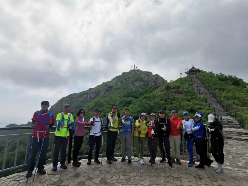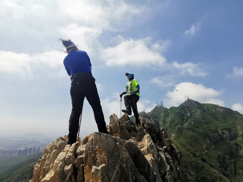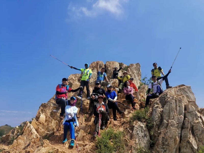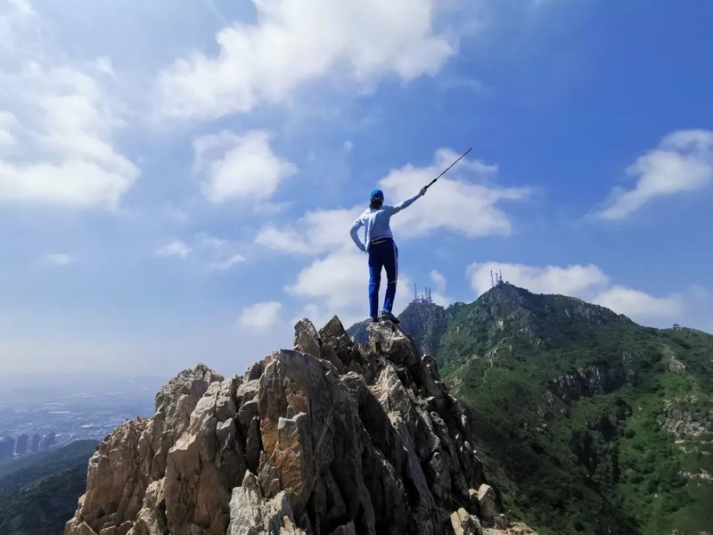 一路在岩石之间上行,顺利到达“杜鹃坡”的观光台。夏风在山间恣意吹拂,清爽无比,曼舞的白云下山峦如黛,此时的大黑山只属于我们的团队,环顾四方,酣畅淋漓。