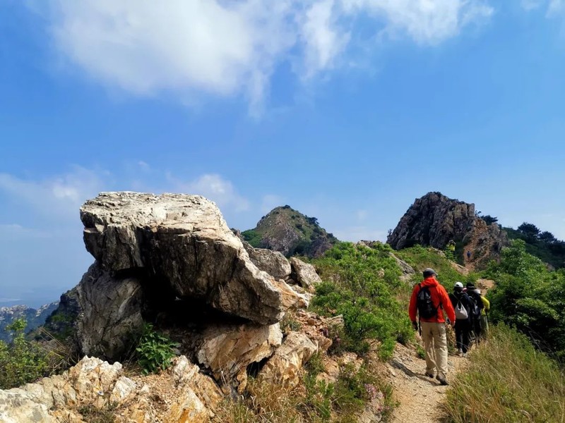 根据天气预报设计的时间安排果然不负众望。空中的白云在蓝色的天空里悠悠的信马由缰,地上的我们,穿越茂密的树林便开始了悬崖峭壁之间的攀爬。说是悬崖峭壁,但长年累月的有人行走,已经有了相对成熟安全的路径,只是这路,是户外人理解的极具运动趣味的穿行之路。