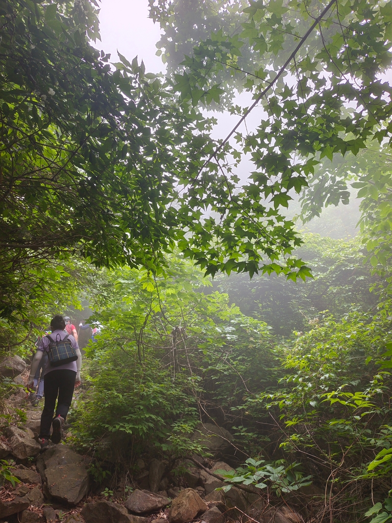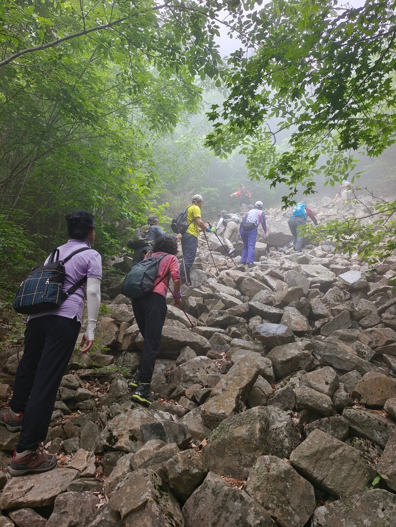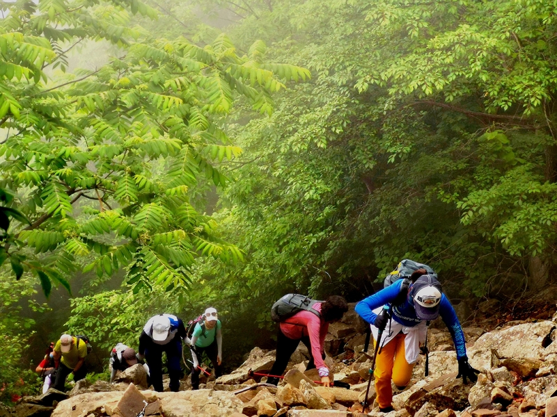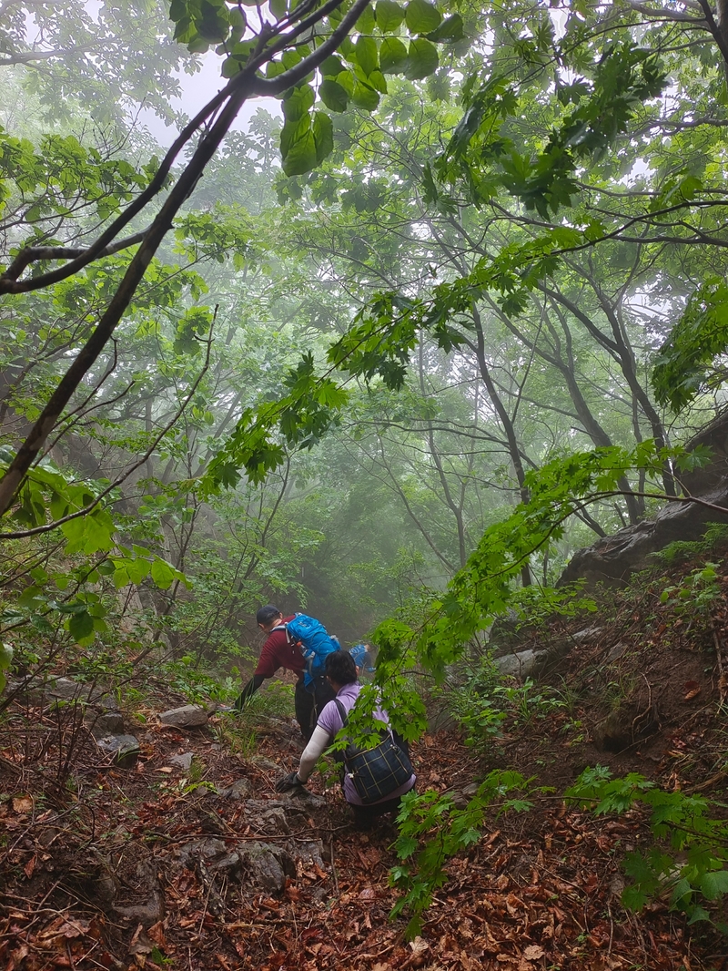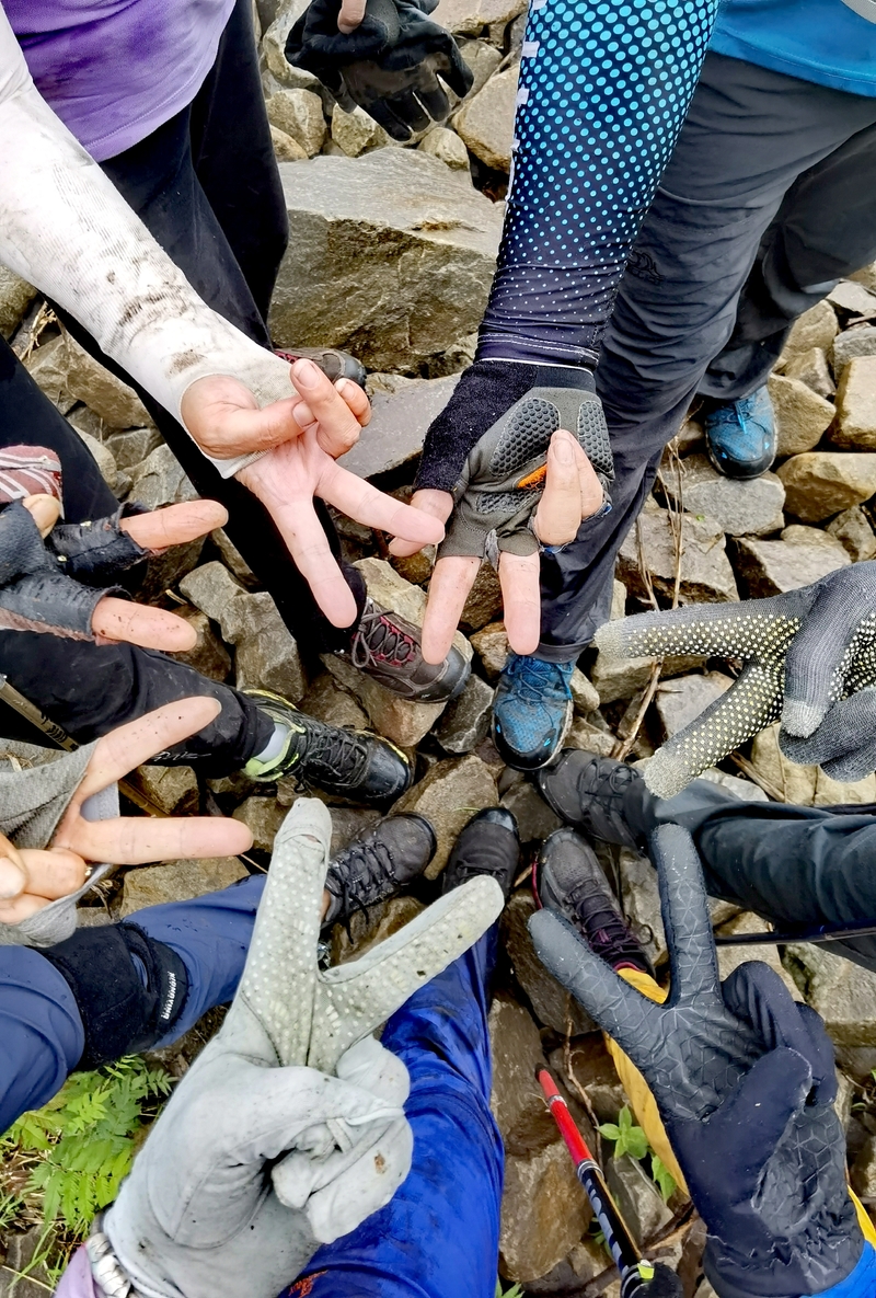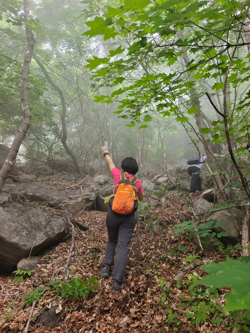 海拔1075米辽南第二高峰老黑山让今天一起穿越的队友见识了什么叫爬山。没有征服的欲望,只是很久没来走走,惦念了。这个端午假期,便把老黑山纳入行程之中。实际上,老黑山的风景指数在辽南并没有太大优势,山路崎岖艰难,对于普通旅游者并无吸引力。能够吸引户外爱好者的元素其一是石海。在老黑山主峰半山坡那几处由巨石汇集而成的巨大石坡,据说事冰河世纪的地质遗址。由于巨石犹如一条大河从山上倾泻而下,所以人们又叫它古石河,也有人称其为“天意石河”。另外,被誉为“植物活化石”的天女木兰也只是这里得特色古老植物之一。属第四纪冰川期幸存的珍贵稀有木本花卉,被列入国家濒危植物名录,对生长环境选择性极强,大多开在海拔千米以上的高峰。这个端午天气阴沉湿润,对于户外运动无疑是个考验。到达位于庄河蓉花山乡小峪村的老黑山脚下仰望,山峰云雾缭绕不见真面。一行13人的队伍面对的即将是一场迷雾中的森林探索。近些年来即使当地人也很少上山,户外穿越队伍为数无几,山上已经没有成熟的路线。所以,对于路况的复杂,心中提前已有考量。雾气笼罩的山中,植被茂密,路况比预想的还要更有难度系数。说是路,其实除了刚开始的部分小毛道以后,就是按照定位方向寻找的极为不明显的野路,我们走过了,便也成了路。路过石海,望去,石河如巨石形成的瀑布,在雾气中越发有天外飞石的神秘感,也蔚为壮观。湿滑中放低身体小心翼翼,一步一块石头。跨过大小三个石海,攀爬岩壁,密林穿插,按计划到达主峰。主峰并无权威海拔标志,应该是之前的登山者在树枝和石头上挂满了jingfan,雾中飘舞,有那么一点神圣感。登顶之后一路下行,这是几年来最严峻的下山体验。初始虽然坡度较陡,枯叶深厚,倒也顺利。继续向下,枯树,藤类植物布满山谷,再次查看轨迹,和之前轨迹查看还是一个路线没错,几次有人走过,再上去观察峡谷两边,比峡谷里面还要茂密无法行走,只能硬着身子创出一条路。过后我和伙伴说“像推土机一样开路”。完全借助身体的向前向下推力压力,在枯树和藤蔓中杀出下山路。甚是脚不触地在树植上“悬空漫步”。还好,只是三百米左右,终于突围,步入消防山路。只有6公里的路程,用时5个多小时,可见路线的难度。有队友戏称这是6星级别穿越。密林、石河、枯叶深坑、峭壁、枯树横亘、藤蔓丛生等等,今天穿越之路太富有户外的各种“障碍设计”,我们的队友又经历一次户外从没有过的淬炼。因在前方探路和开路,自己拍摄照片不多;文中图片多为队友作品。感谢每一位队友的信念坚持和配合,我们同心协力完成本次难度系数较高的户外穿越。【365户外】6月3日大连庄河老黑山穿越
