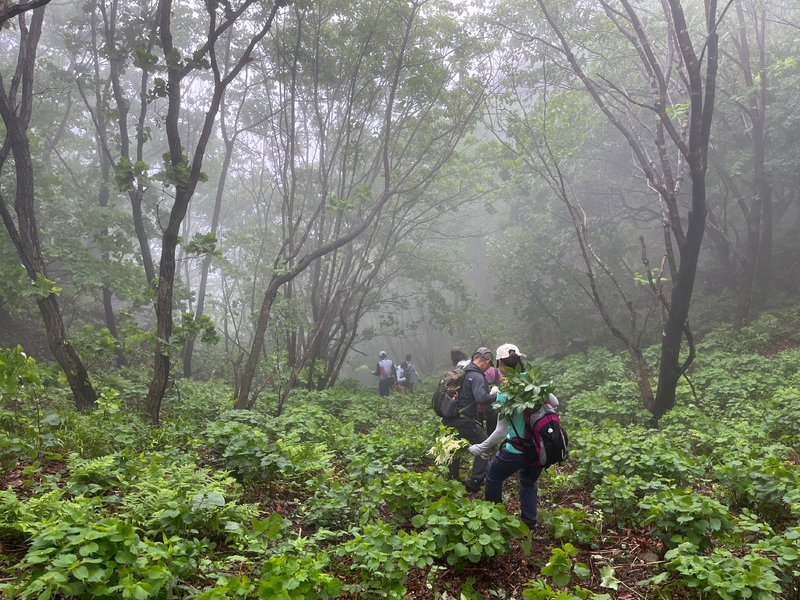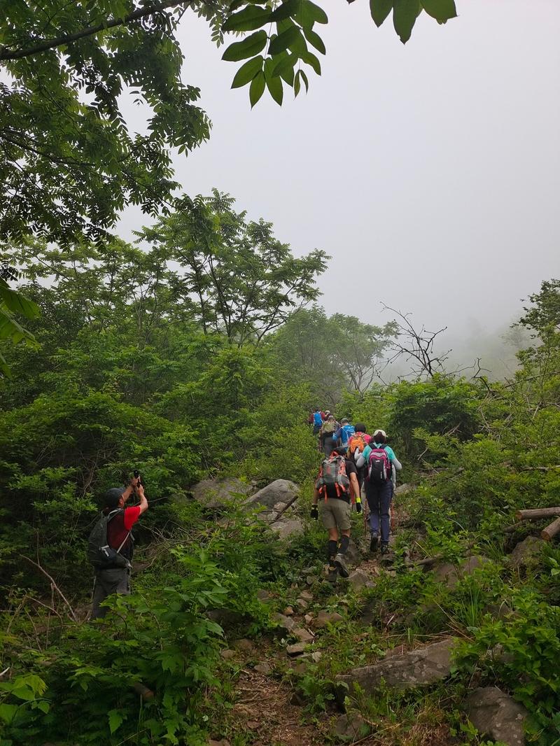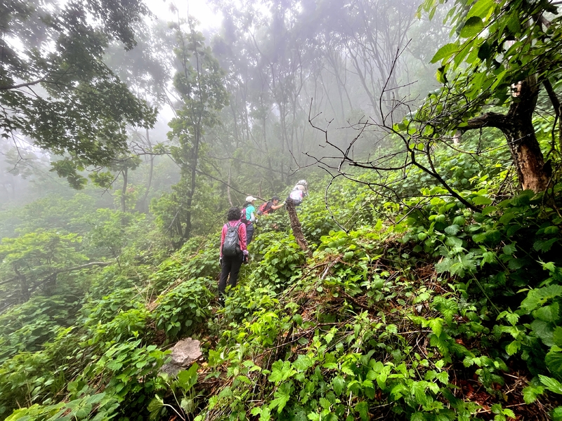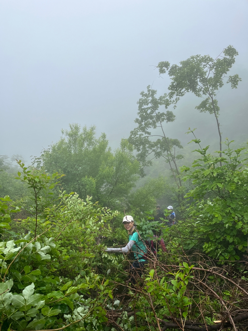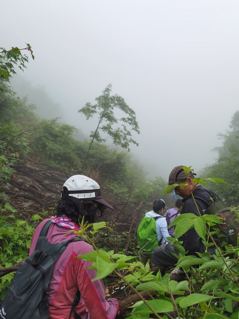 这个端午天气阴沉湿润,对于户外运动无疑是个考验。到达位于庄河蓉花山乡小峪村的老黑山脚下仰望,山峰云雾缭绕不见真面。一行13人的队伍面对的即将是一场迷雾中的森林探索。