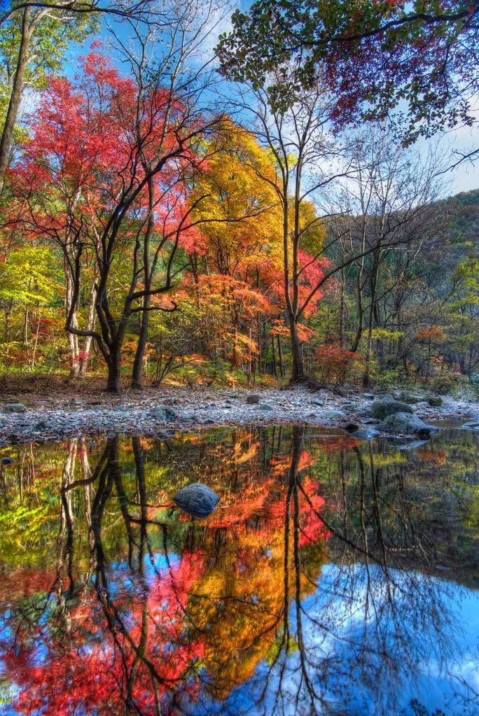 枫的红,叶的黄,水的蓝、山的彩,层林浸染,秋水斑斓……一路上最忙的是摄影师与你的双眼。