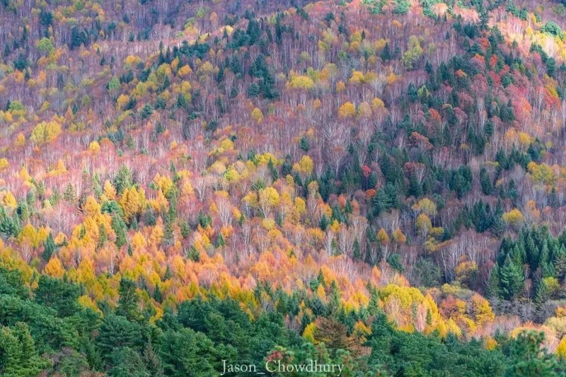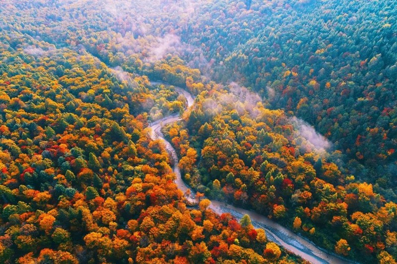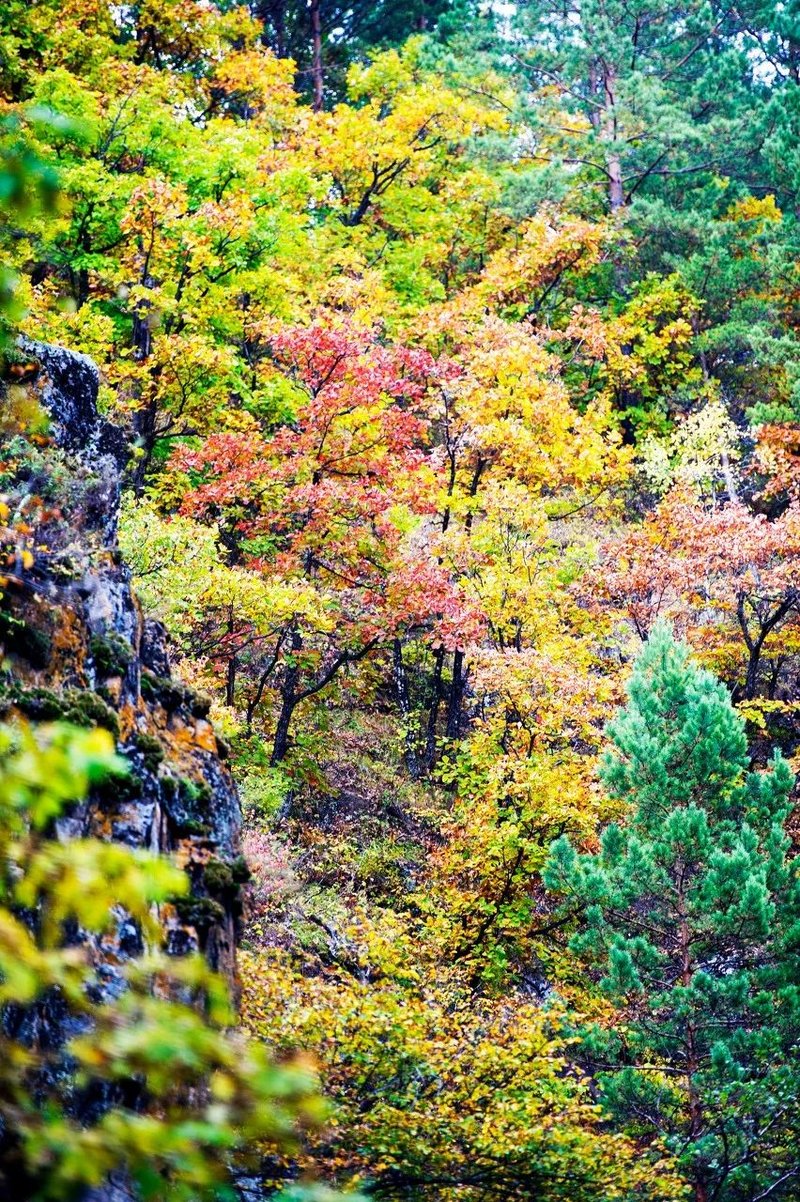 一到秋天,整个林区换装成一座五颜六色的五花山,比喀纳斯色彩更丰富,比九寨沟规模更壮观!