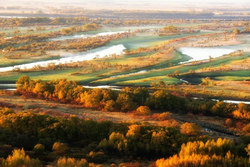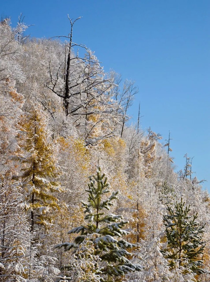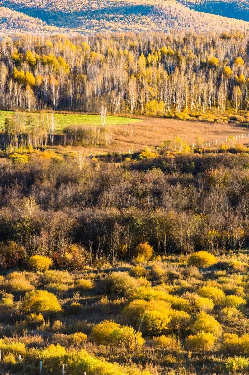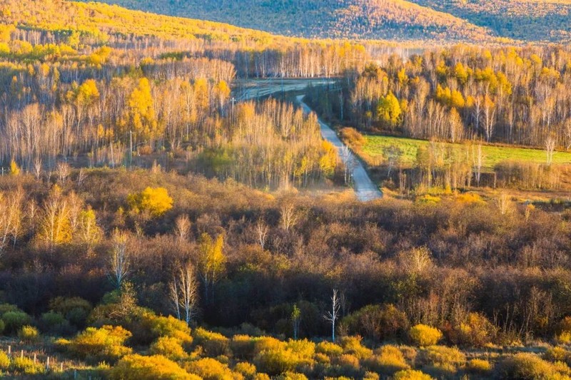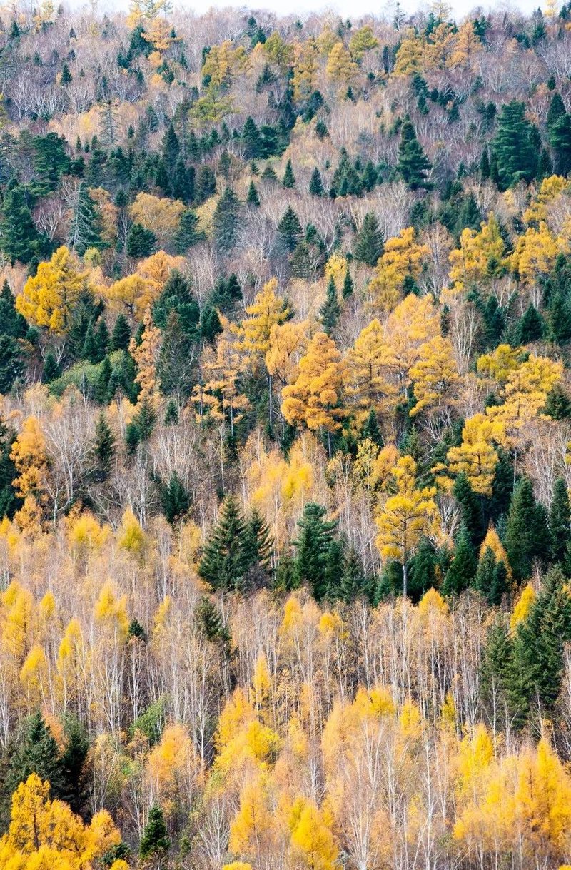 一场秋雨,一场霜,色彩便以不可阻挡之势,漫山遍野向远方蔓延,在群山峻岭中渲染。黄如金,红似火,兴安之秋成了童话世界。