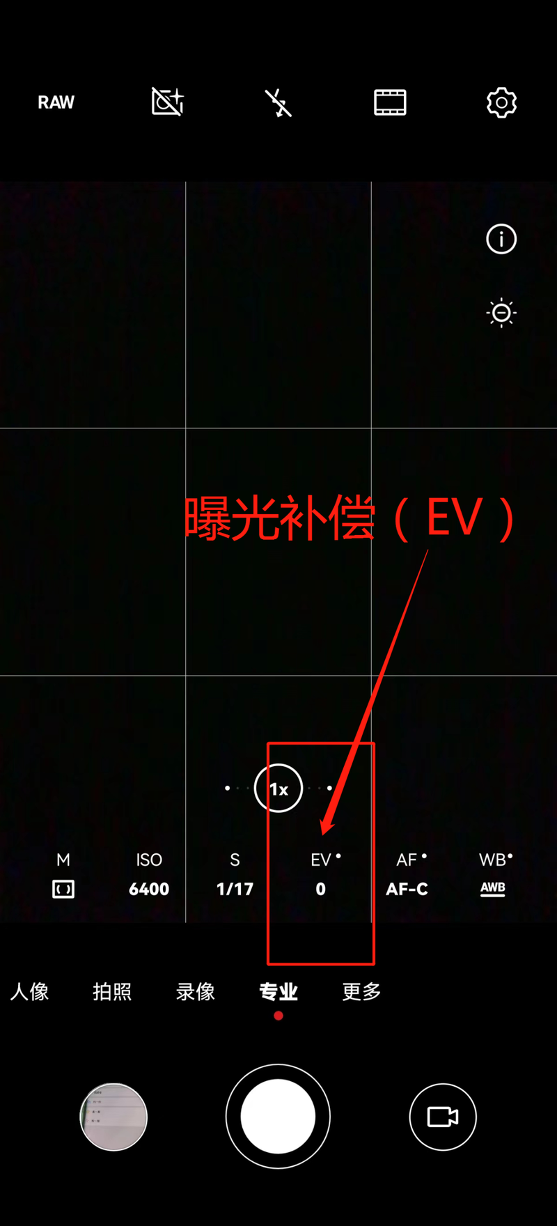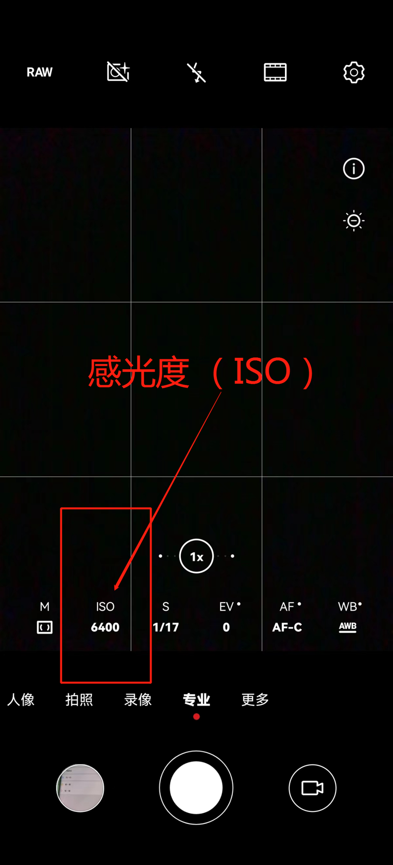 专业模式中的感光度