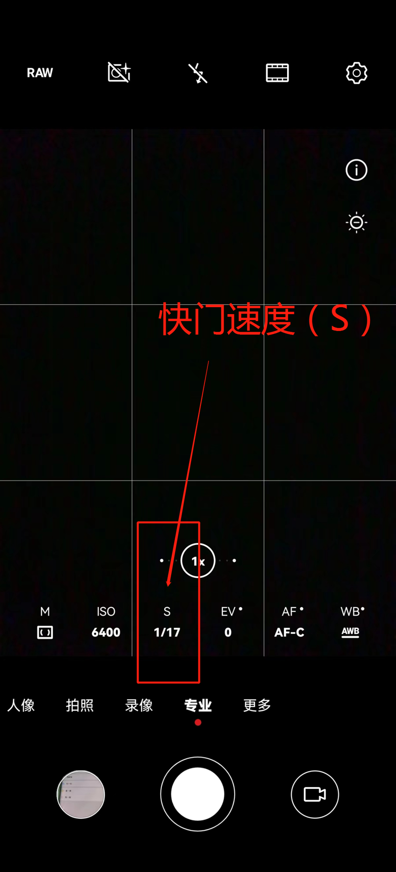 专业模式中的快门速度